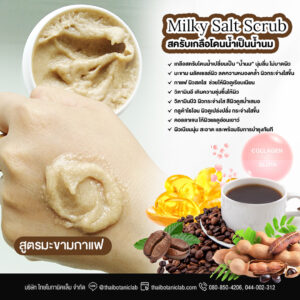 สครับผิวสูตรเข้มข้นที่ผสานสารสกัดธรรมชาติอย่าง มะขาม และ กาแฟ ให้สัมผัสแบบ “น้ำนม” เมื่อโดนน้ำ