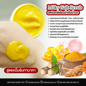 สครับผิวสูตรธรรมชาติที่ผสานพลังของ ขมิ้นชัน และ ทานาคา เข้ากับเกลือสปาเนื้อละเอียด ให้สัมผัสแบบ “น้ำนม” เมื่อโดนน้ำ