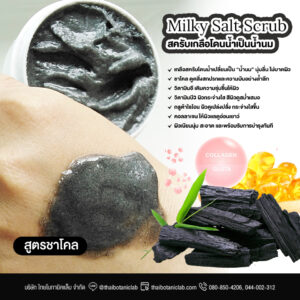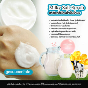 สครับผลัดเซลล์ผิวอย่างอ่อนโยนด้วยเม็ดสครับเกลือ พร้อมสัมผัสนุ่มลื่นเมื่อโดนน้ำแล้วเปลี่ยนเป็นเนื้อ “น้ำนม”